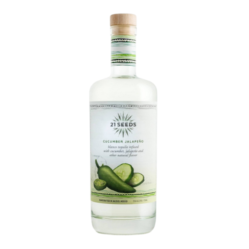 Experience the luxury of simplicity with 21Seeds Cucumber Jalapeno Infused Tequila. With bright, crisp notes of cucumber and a spicy finish, this tequila blanco infused with natural flavors offers the perfect balance of smooth flavor and fresh scent. 21Seeds crafts its award-winning tequila alcohol by slow cooking agaves from Jalisco. Perfect for an easy Seed & Soda cocktail.