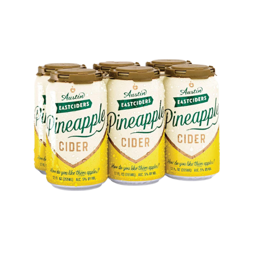 Austin Eastciders Pineapple Cider is a bright semi-sweet cider made with tropical pineapple and heirloom bittersweet apples.