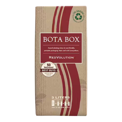 Bota Box RedVolution reveals rich, jammy aromas of black cherry, plum and dark berry. Extending into lush flavors of dark fruit, spice and vanilla, this smooth, full-bodied wine culminates in a juicy, fruit-focused finish. Our RedVolution pairs well with a variety of dishes including grilled lamb, wild mushroom pizza, and penne pasta with fresh tomato sauce.
