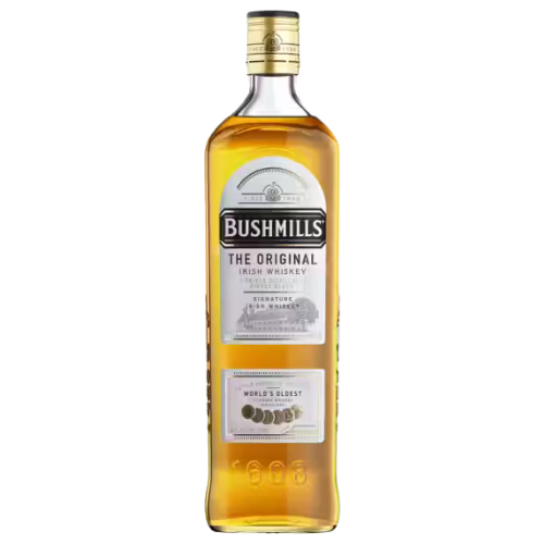 Bushmills® Original Irish Whiskey is triple-distilled single malt whiskey combined with an aromatic, lighter grain Irish whiskey, aged at least 3 years in Kentucky bourbon barrels & Spanish Oloroso sherry casks. This is the highest quality blended Irish whiskey from Ireland's oldest whiskey distillery. A recipe unchanged since the 1800s. • 90 Points Wine Enthusiast (40% ABV – 80 proof)