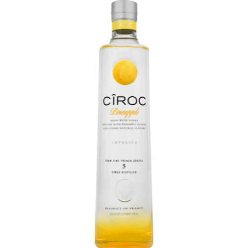 CIROC Pineapple is a rich tasting spirit made with vodka distilled five times from fine French grapes, finished in a tailor-made copper pot still in Southern France. This spirit is masterfully infused with a distinctive blend of pineapple and other natural flavors, resulting in a taste experience that is lusciously different and elegantly smooth. Simply mix with pineapple juice for a refreshing tasting La Piña cocktail. CIROC was named One of the World’s Best-Selling Vodkas at the 2020 Drinks International awards. Includes one 70 proof 1 L bottle of CIROC Pineapple. Please drink responsibly.The vodka is masterfully infused with a distinctive blend of pineapple and other natural flavors, resulting in a taste experience that is lusciously different and elegantly smooth.