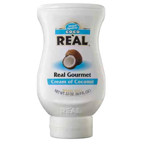 Coco Reàl Cream of Coconut contains real coconut meat – not just coconut milk 100% cane sugar Developed specifically to remain uniform with very minimal product separation Bottle features built-in oxygen barrier to guarantee product freshness