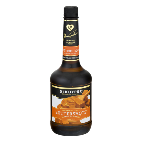 DeKuyper® Buttershots™ Schnapps Liqueur is carefully created with the rich, creamy flavor of butterscotch to deliver you the fine taste you expect from De Kuyper. Bring the comforting flavor of butterscotch to your favorite drinks with this buttery liqueur. A clear liqueur, Buttershots™ tastes of indulgent, rich, and melted butter and brown sugar.