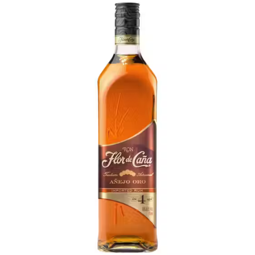 Flor de Caña 4 Anejo Oro Rum is a light-bodied premium rum with no added sugar. This rum has aromas of sweet almonds and vanilla with flavors of white chocolate and orange essence, and a crisp, dry finish. Best enjoyed with soda or sparkling water, or in punches and tropical cocktails. Flor de Caña rums are naturally aged in small white oak bourbon barrels sealed with plantain leaves, creating a unique rum with tropical notes. The fertility of its soil, the volcanic climate to which the barrels are exposed during the aging process and the enriched volcanic water contribute in creating a singularly smooth and rum with rich flavor.