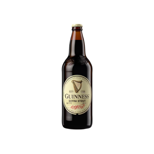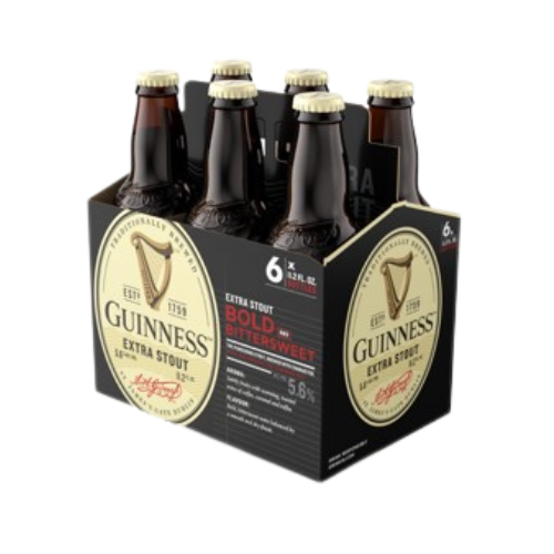 This is the stout that made Guinness famous. Sought after by beer aficionados for its mix of hop bitterness, dark malty flavor, crisp roasty notes and bittersweet finish, Extra Stout is perhaps the definitive version of an Irish dry stout. Guinness Extra Stout is carbonated (as opposed to nitrogenated), giving it more hop bite and a crisper mouthfeel. It pours a dark ruby color with a robust, foamy tan head. A generous percentage of roasted barley in the brew gives this beer its signature clean, dry finish.