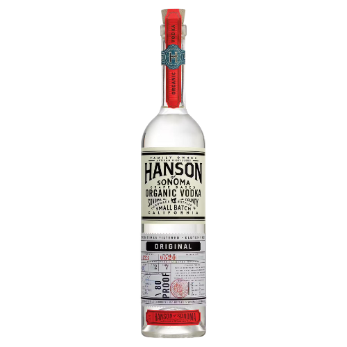 Hanson of Sonoma Organic Vodka Original is a Grape-Based, Family Made Vodka crafted in the Sonoma region of California by Hanson 1st and 2nd generation family members. An award-winning vodka addition to your craft cocktail home bar, Hanson of Sonoma earned 97 Points from USA Spirits Competition in San Francisco and 96 Points from Ultimate Spirits Challenge in New York. Perfect for mixed drinks, this vodka alcohol liquor is 100% USDA Certified Organic, Non-GMO, Carb Free, Gluten Free, and Sugar Free. This Organic Vodka alcohol liquor is crafted from mostly French Colombard white grapes and distilled from a copper column still + copper pot still + copper pot still with cognac head. The result is a 100% pure distillate liquor with a hint of grape, pear, quince aromas and flavors and a smooth, pleasant mouthfeel. Enjoy Hanson of Sonoma alcoholic beverages with chocolate truffles, caviar, oysters, cheese, and charcuterie. Hanson of Sonoma Original is exceptional neat and pairs perfectly in cocktails such as Martinis, Bloody Marys, Transfusions, and other craft cocktails. One bottle of Hanson of Sonoma Original Organic Vodka Alcohol has 40% alcohol by volume, 80 proof liquor.