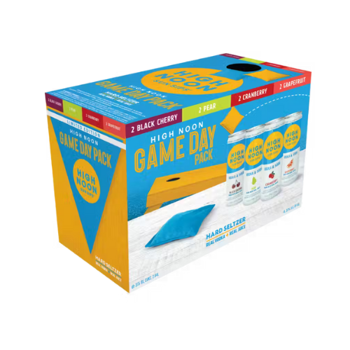High Noon Limited Time Offering Game Day Pack is made up of 4 flavors all made with real vodka and real fruit juice, sparkling water and natural flavors. Only 100 calories, no added sugar and gluten free. Limited Edition Tailgate Pack includes: Black Cherry, Pear, Cranberry, and Grapefruit cans.