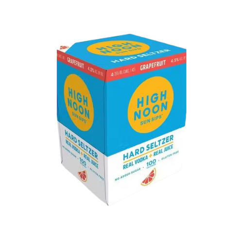 Live like the sun's out with High Noon Vodka Hard Seltzer. Made with real vodka, sparkling water, real fruit juice and natural flavors, this citrus hard seltzer offers tasting notes of juicy grapefruit with hints of sweet ruby red grapefruit flavor in a crisp, lively, sparkling drink. With 100 calories, this hard seltzer is gluten free with no added sugar. Just toss these cans in the cooler or the fridge for convenient drinks during your next sunny adventure. High Noon Hard Seltzer is perfect when sipped ice cold at a backyard barbecue, pool party or a day at the beach. Each can has 4.5% alcohol by volume. In addition to Grapefruit, High Noon's are available in Mango, Peach, Lime and other varieties.