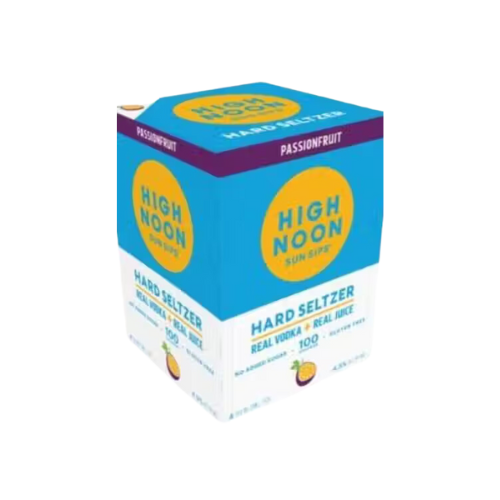 High Noon Passionfruit Hard Seltzer is made with real vodka and real fruit juice, sparkling water and natural flavors. Only 100 calories, no added sugar and gluten free. Passionfruit is a bubbly burst of juicy, tangy and sweet. Most perfect for an impromptu pool party with a dozen of your closest friends.