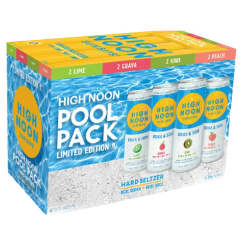 The perfect 8-pack to make a splash with friends, as long as you remember to share! Limited Edition Pool Pack includes 2 Lime, 2 Guava, 2 Kiwi, and 2 Peach cans.