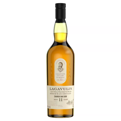 For their third limited release, Lagavulin and Nick Offerman crafted Lagavulin Offerman Edition Double Charred 11 Year Old Islay Single Malt Scotch Whisky as the perfect whisky to sip with the perfect steak. This Lagavulin Single Malt Scotch Whisky is matured for at least 11 years in heavily charred former bourbon and red wine barrels. The resulting flavor features hints of round red berries, a touch of briny saltiness, notes of vanilla, and the signature Lagavulin intense peat. Best enjoyed as Offerman intended, with a grilled medium-rare rib-eye steak - or any robust meal - either neat or on the rocks. Includes one 92 proof 750 mL bottle of Lagavulin Offerman Edition Double Charred 11 Year Old Islay Single Malt Scotch Whisky. Please drink responsibly.Taste: Hints of round red berries, a touch of briny saltiness, notes of vanilla, and the signature Lagavulin intense peat