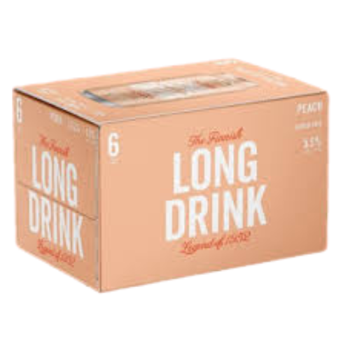 The Finnish Long Drink-Peach is a gin-based citrus canned cocktail with natural peach flavors. ABV -5.5%