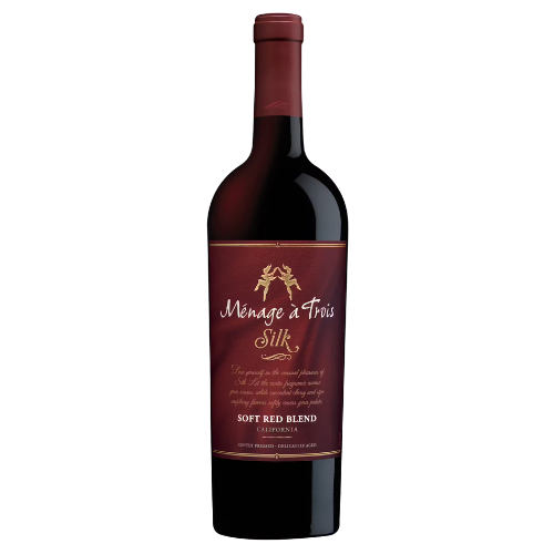 Menage a Trois Silk Red Wine is a smooth, seductive red blend that caresses you with every sip. Made with a blend of Pinot Noir, Malbec and Petite Sirah, this full-bodied bottled wine glides gracefully across your palate like liquid silk. Succulent cherry and ripe raspberry flavors mingle with delicate hints of rose petals and toasty spice. The 2021 vintage received 90 Points at the Toast of the Coast Competition. Enjoy this soft, smooth red wine blend red wine with roast chicken, steak and salmon. California wine made with grapes sourced from premier California vineyards. To further illuminate the wine’s unique texture and flavors, the red blend is enhanced with a hint of sweet, spicy French and American oak. This bottled wine has 13.6% alcohol by volume. Menage a Trois offers a robust portfolio of award-winning wines that consistently delight with a high-quality experience.