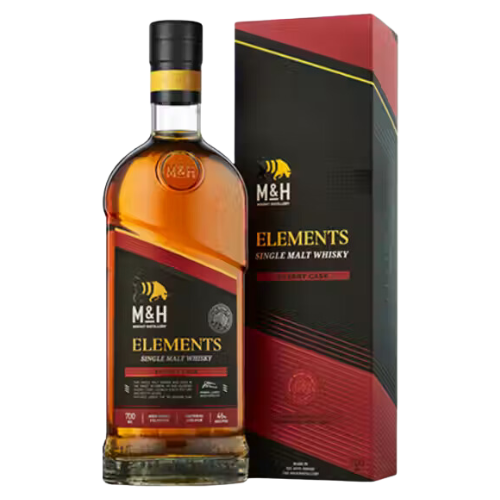 To create this whisky, we travelled all the way to Jerez, Spain, and had Oloroso and Pedro Ximenez sherry made especially for us. The casks, once filled with quality sherry and seasoned for one year in Jerez, were brought to the distillery to mature our New-Make spirit for a wonderful complex whisky. The M&H Elements Sherry is the first and only kosher single malt whisky in the world, aged in Sherry casks. This single malt reveals robust flavors of red fruit, dark chocolate, and oaky notes.