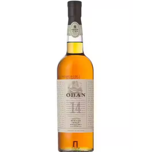 Discover the distinct flavors of the islands of Scotland with Oban 14 Year Old Single Malt Scotch Whisky. Our 86 proof whisky holds a delicate balance of dried figs and honey-sweet spices followed by a long, smooth-sweet finish of oak wood and a hint of salt air. The best of the Highlands and coastal influences, centuries of local distilling tradition are what make our award-winning whisky so exquisite. Oban 14 Year Old Single Malt Scotch Whisky earned a gold medal at the 2019 San Francisco World Spirits Competition and 94 points at the 2019 Ultimate Spirits Challenge. This single malt whisky is best served neat in a tumbler, perhaps with a splash of cool spring water. Includes one 86 proof 750 mL bottle of Oban 14 Year Old Single Malt Scotch Whisky. Please drink responsibly. Nose: A whiff of sea salt Taste: Flavors of rich fruits, smoky dryness, honeyed spice Finish: Full-bodied Highland malt