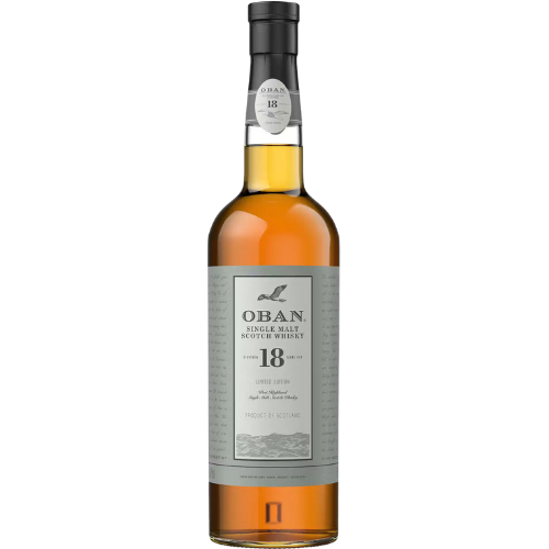 Discover the distinct flavors of the islands of Scotland with Oban 18 Year Old Single Malt Scotch Whisky. Our 86 proof whisky holds rich, spicy and fruity notes balanced by a distinct trace of salt. Its intricate blend of flavors creates a long, elegant and drying finish with late hints of smoke and cocoa. The best of the Highlands and coastal influences, centuries of local distilling tradition are what make our award-winning whisky so exquisite. Oban 18 Year Old Single Malt Scotch Whisky earned a double gold medal in the 2021 San Francisco World Spirits Competition and 93 points in the 2019 Ultimate Spirits Challenge. This spirit is best served neat in a tumbler, perhaps with a splash of cool spring water. Includes one 86 proof 750 mL bottle of Oban 18 Year Old Single Malt Scotch Whisky. Please drink responsibly.Taste: Opulent fruit flavors with rich peat smoke and spicy wood Finish: Long, smooth