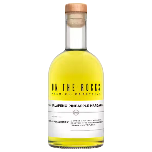 Taste the modern twist on a classic with On The Rocks, OTR Jalapeno Pineapple Margarita Ready to Drink Cocktail. On The Rocks carefully crafts cocktails that make the moment. On the sofa, by the pool, at a festival, this sweet and spicy Margarita is ready to pour over ice and enjoy. Developed by mixologists, On The Rocks cocktails bring the bar to you with premium spirits and pure creativity. This beautifully balanced recipe is a culinary experience in a glass. A hint of jalapeno heat is combined with lime and pineapple flavors, triple sec and Tres Generaciones Tequila. Just pour over ice for effortless enjoyment, whether you’re serving friends who share your love for heat or celebrating the end of the week. Garnish with pineapple and jalapeno to elevate the evening. Each bottle contains 20% alcohol by volume and should be enjoyed responsibly. OTR delivers the bar wherever you are. Just open, pour over ice and enjoy.