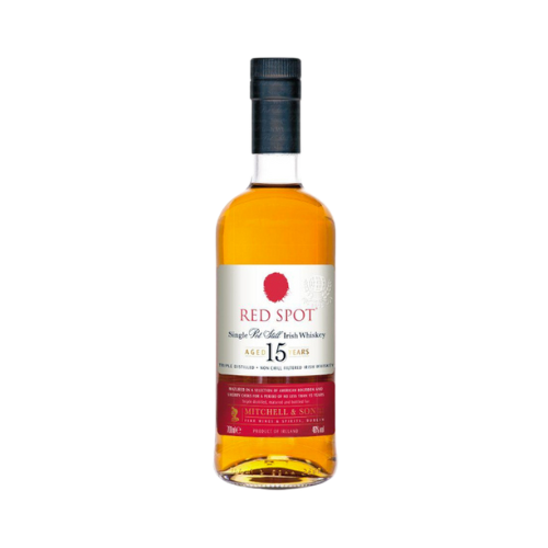 Crafted from an old recipe handed down by the Mitchell & Son family of wine merchants, with records dating back to the early 1900s, the reimagined Red Spot is a triple-distilled, single pot still Irish whiskey that has been matured for a minimum of 15 years in a combination of American Bourbon casks, Spanish sherry butts and Sicilian Marsala wine casks, all contributing in rich and complex flavors, making it the top spot in the range.