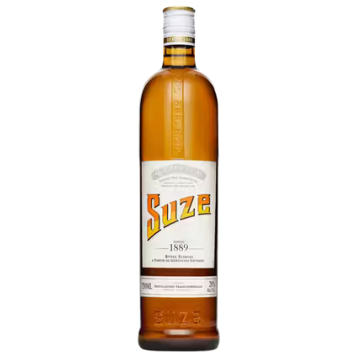 A litre bottle of Suze Saveur D'Autrefois, a spicy, fruity aperitif made in the Thuir region of southern France since 1889. Made using wild yellow gentian from Auvergne, this is a secret ingredient of many an American bartender. Try it over ice, with tonic or add a splash to your martini.