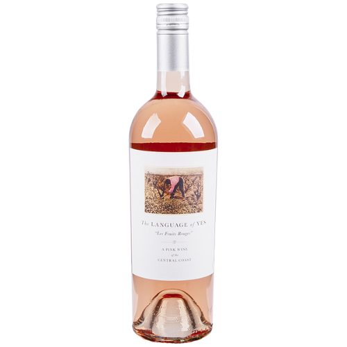 The The Language of Yes Les Fruits Rouge Central Coast Pink Wine is a medium salmon-colored rose in which both Grenache and Cinsaut show their varietal typicity and inspire the moniker, 'Les Fruits Rouges.' The 2% addition of Tibouren may seem like a homeopathic addition but adds additional complexity and elegance to the blend. On the nose, one instantly finds the tell-tale strawberry rhubarb/white peppery notes of Grenache with suggestions of apricot, lavender and tarragon. On top sits the elegant essence of Cherry, almost certainly emanating from the Cinsaut.
