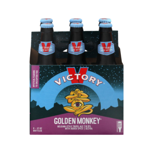 A magical, mystical Monkey whose golden soul glows with the wisdom of the ages. This warming, flavored ale is rich in the spirited tradition of Belgian-inspired brewing. Victory Golden Monkey Beer is both playfully delightful and profoundly satisfying. Exotic spices from the East round out this global journey to joy. Get on board. This Monkey’s bound for glory!