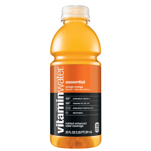 this just in: there’s some good news for good people who like good stuff—there’s more of it (because we put more in there). you know the bottle of liquid beverage that has a color moment everywhere it goes? yeah, you know the one. well, essential is the same orange-orange flavored water beverage with vitamins and deliciousness, but now it’s a bazillion times more good because of all the nutrient enhancements and its sports-level hydration. and yes, it still has an iconic color moment everywhere it goes (we could never change that). okay, okay, let’s get to the point. what does this upgrade mean for you? it means vitamins. and electrolytes. and more nutrients. which are all good things. with 100 calories per 20oz bottle. it also means this vitaminwater essential has 250% daily value of vitamin c and 25% daily value of zinc.and that's bad news for the people who like bad stuff. so, make sure to pick up a pack if you’re a do-gooder or a good stuff appreciator or a color icon, just like us.