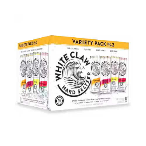 Discover a wave of pure, crisp taste refreshment with White Claw® Hard Seltzer Variety Pack No.2. Crafted with quality ingredients, White Claw® Hard Seltzer is made from a blend of seltzer water, gluten-free alcohol, and a hint of fruit flavor. Variety Pack No.2 includes four refreshing flavors for everyone to enjoy with classic Lemon, refreshing Watermelon, zesty Tangerine, and White Claw’s, top-requested flavor: Passionfruit. Each 12oz can contains 100 calories, 5% alcohol, and 2g carbs, making them perfect to share in your best moments. They’re a great choice for backyard barbecues, sitting on the patio or porch, or entertaining family and friends at home. Please drink responsibly. 21+.